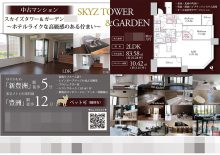 背景には物件からの眺望写真を大きく配置し、紙面のカラーリングと青空のある風景をリンクさせつつ、開放感のある印象を加えました。