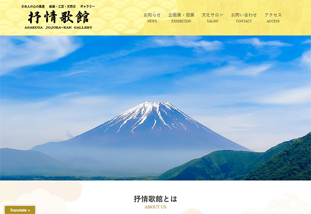 日本の象徴でもある富士山をメインビジュアルにすることで、インパクトのあるファーストビューにしました。また、フッターには浅草寺の写真を使用することで、浅草にあるギャラリーだということがすぐにわかるようになっています。サイト全体も和柄の背景を入れることで、和テイストなデザインにしました。