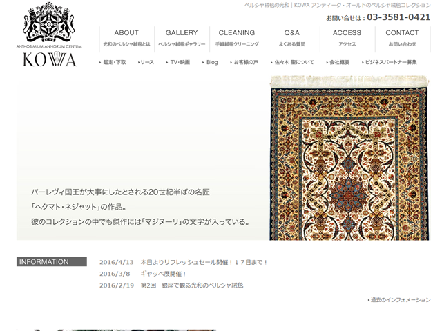 東京都港区虎ノ門にてペルシャ絨毯を取り扱う「光和」様のホームページ。