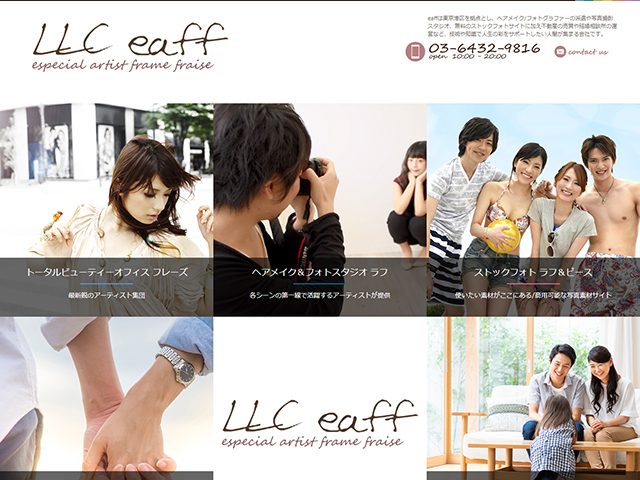 ヘアメイク/フォトグラファーの派遣や写真撮影スタジオ、ストックフォトサイト、不動産の売買や結婚相談所の運営など、人生の節目や新たな一歩に深く関わるサービスを提供しているLLC eaffのwebサイトです。