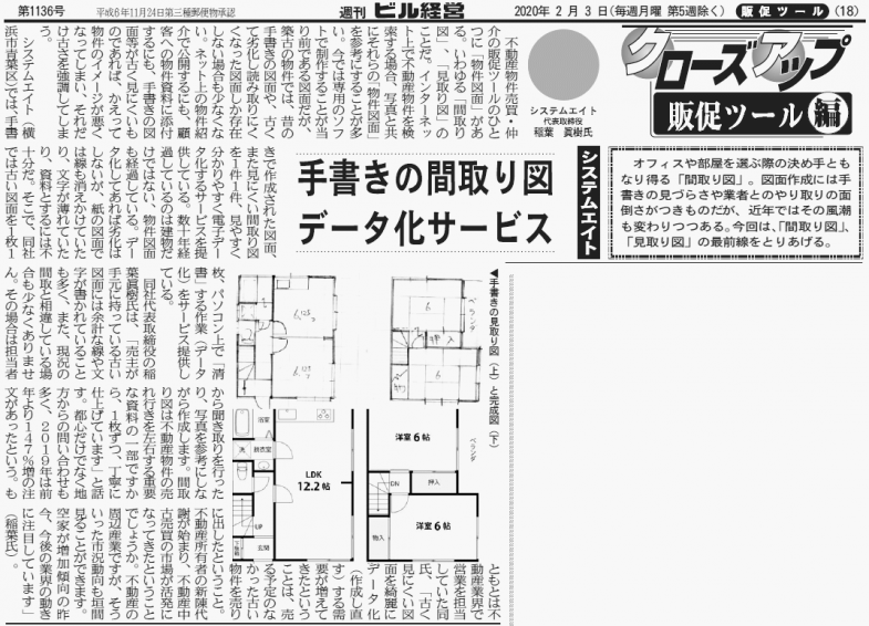 不動産専門メディア「週刊ビル経営」にて、システムエイトの間取図制作サービスをご紹介いただきました!
