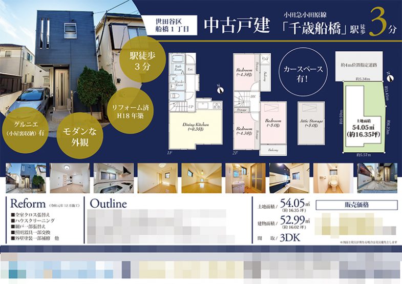 Works 中古一戸建 マイソク(東京都世田谷区) 不動産図面制作 2019.12.24 全体的には、濃紺と黄金色を使用した、高級感のあるデザインに仕上げました。 物件の写真を複数枚使用することで、物件が視覚的にイメージしやすいように工夫しています。 キャッチコピーは数個に絞り、外観写真を囲むように配置することで目立たせました。 間取図、配置図も弊社にて作成させていただきました。 オリジナルマイソク、B4横長、片面 雰囲気:高級感・シック色:ブルー色:ゴールド間取図区画図 << 株式会社 エムエス企画様 webサイト制作 | 一覧に戻る | パストラルガーデン webサイト制作(株式会社 リテラス様) >> 関連記事 中古マンション マイソク(神奈川県川崎市幸区) 相模原葬儀.com様 webサイト制作 土地 マイソク(神奈川県横浜市栄区) 不動産売却物件募集チラシ