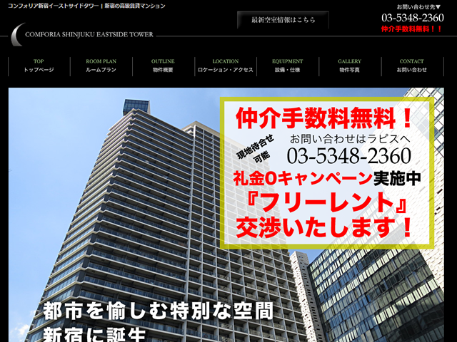 株式会社ラピス様の物件特設サイト「コンフォリア新宿イーストサイドタワー」。