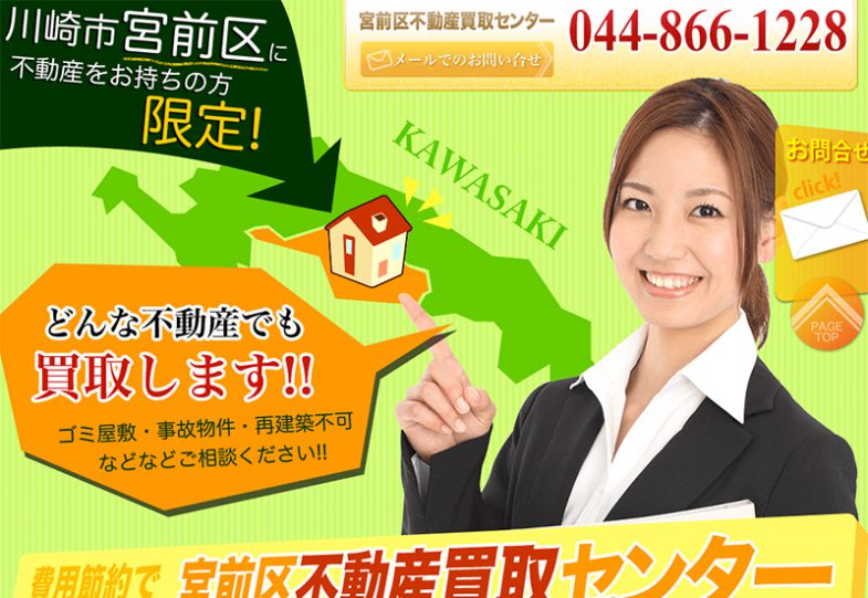 また、不動産買取というサービスは利用者にとっては敷居の高さや難しさを感じる一面がありますが、明るい色調でポップな雰囲気に仕上げることにより、親しみやすさを演出しています。