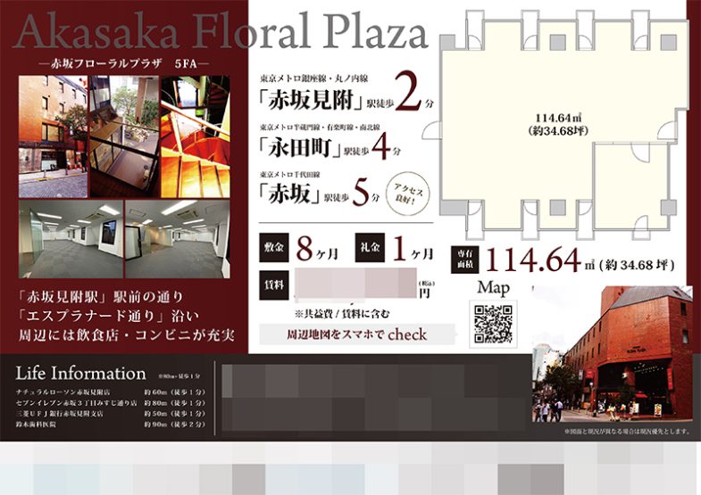 中央にはアクセスを大きく記載することで、アクセスの良い物件であることをアピールしました。