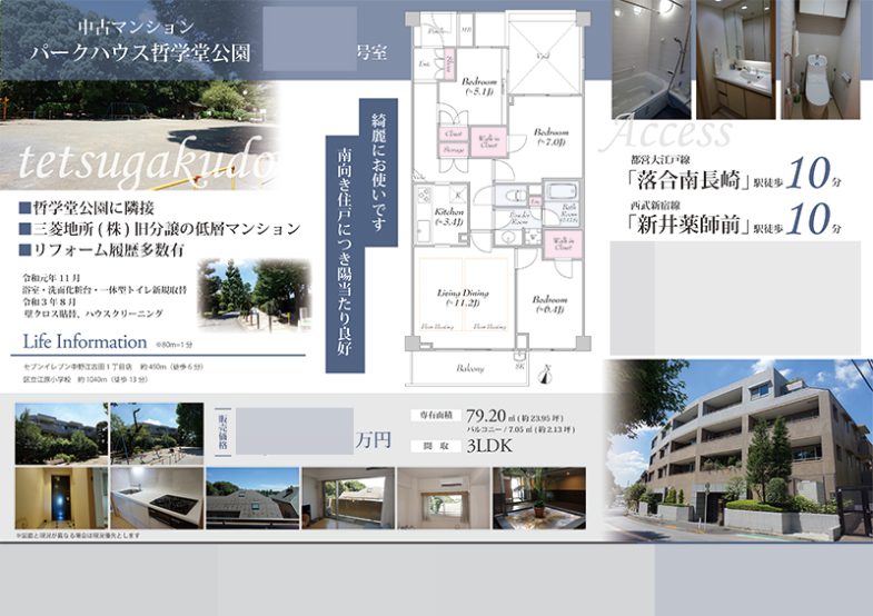 公園に隣接していることもポイントのため、左上には公園の写真を大きく使用しました。