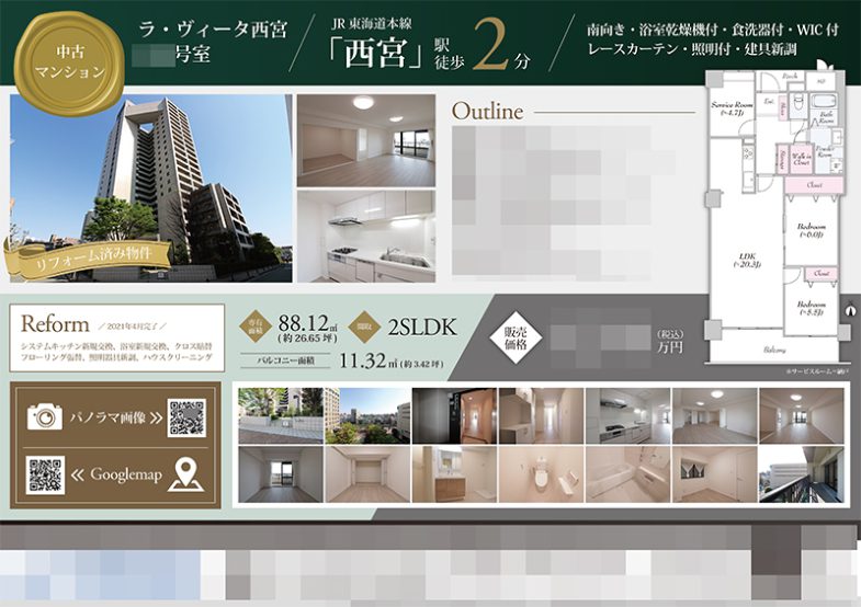 アクセスの良い物件なので、駅徒歩分数は中央に大きめに記載して目立たせています。