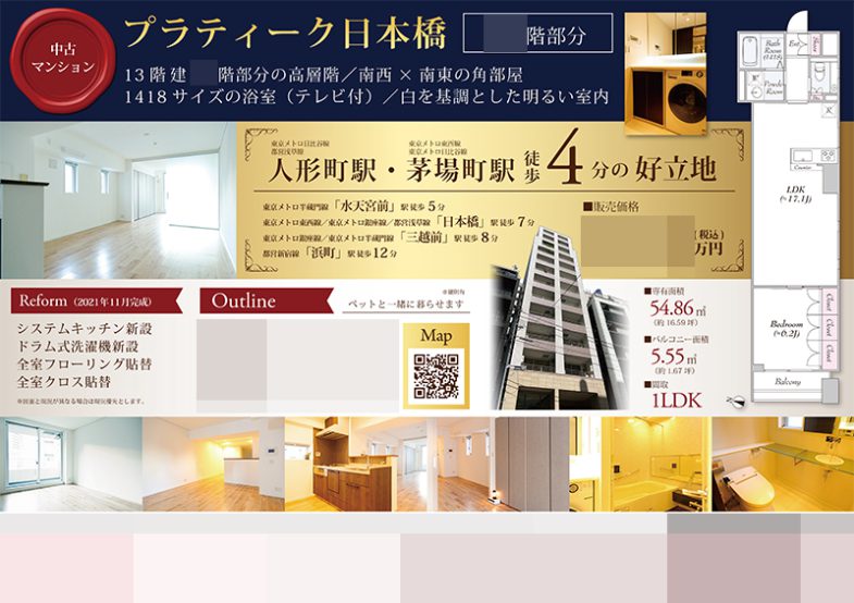 リフォーム済で設備が充実した物件のため、室内写真を大きめに複数枚掲載し、室内の様子がよくわかるように工夫しました。