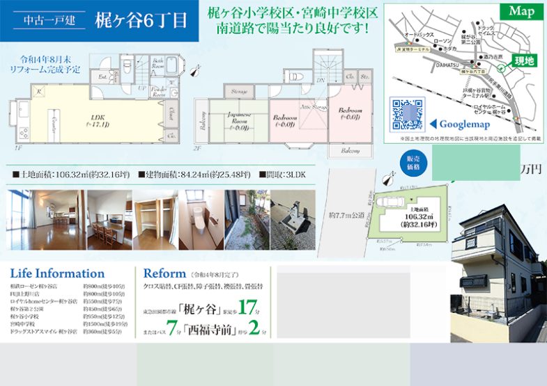 Works 中古一戸建 マイソク(神奈川県川崎市高津区) 不動産図面制作 2022.07.28 ロゴにあわせて青と緑を使ってデザインしました。 間取図・区画図・地図も作成させていただきました。 地図の横にはGoogle MapのQRコードを入れて、スマホですぐに地図を見られるようにしました。 写真を複数枚使うことで、物件のイメージがしやすいように工夫しています。 オリジナルマイソク、B4横長、片面 マイソク雰囲気:爽やか色:ブルー色:グリーン間取図区画図地図 << 中古一戸建 チラシ(神奈川県川崎市高津区) | 一覧に戻る | 土地 マイソク(神奈川県横浜市青葉区) >> 関連記事 中古マンション マイソク(神奈川県横浜市青葉区) 中古マンション マイソク(神奈川県川崎市多摩区) 株式会社 水島商事様 webサイト制作 土地 3物件同時掲載チラシ(東京都豊島区)