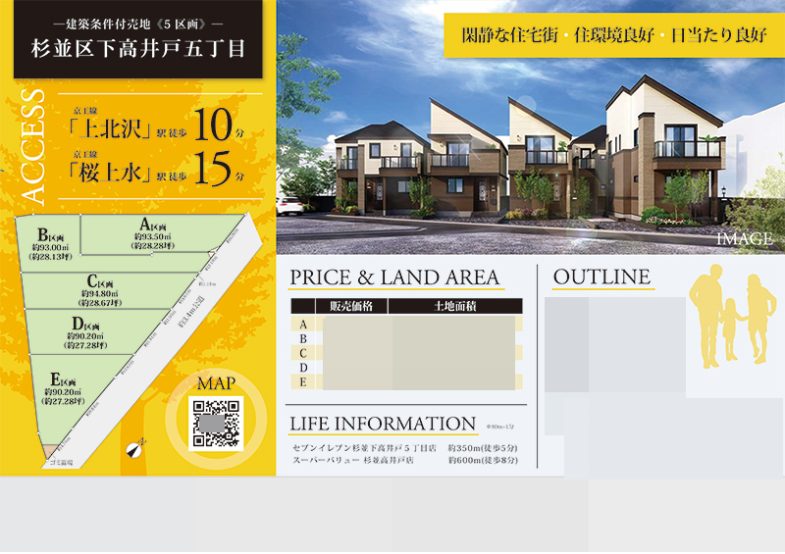 パッと目を引くように、表面右上には完成予想図を大きく配置しました。