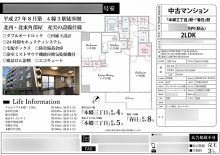 背景には物件周辺の風景写真を大きくあしらい、また物件や近隣施設の写真も多く掲載することで、物件イメージを視覚的に伝えました。