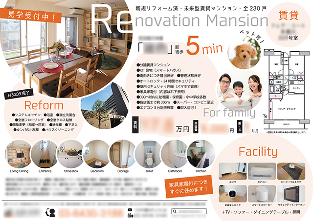 室内写真を多く掲載し、新生活へのイメージがふくらむデザインに仕上げました。